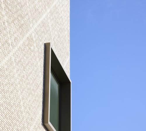 De langsgevels werden, tussen de dragende schijven, ingevuld met houtskeletwanden en vervolgens bekleed met rood plaatmateriaal, dat wel aansluiting zoekt met de wijk zonder de eigenheid van blok 4 op te geven.