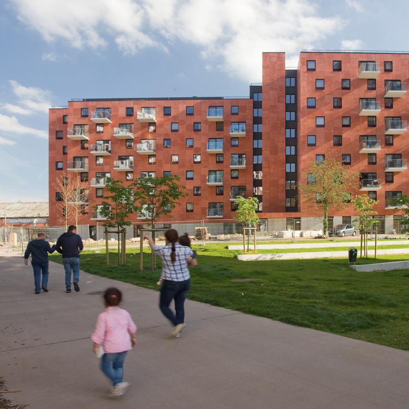 - Programma: renovatie van een sociaal appartementsgebouw, inrichten van een kinderdagverblijf en renovatie rotatieparking